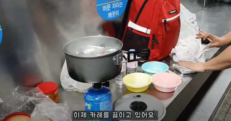 바로 여기 벽소령대피소에서 아침을 해결했습니다.