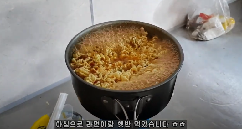 첫째 날에도 느꼈지만 산에서 먹는 라면은 그냥 최고입니다. 그리고, 주먹밥도 같이 만들어 먹었습니다.