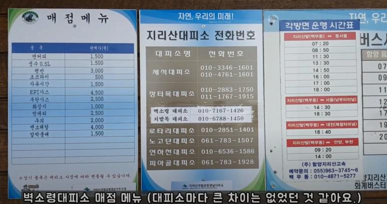 그리고, 이건 대피소 매점 메뉴입니다.