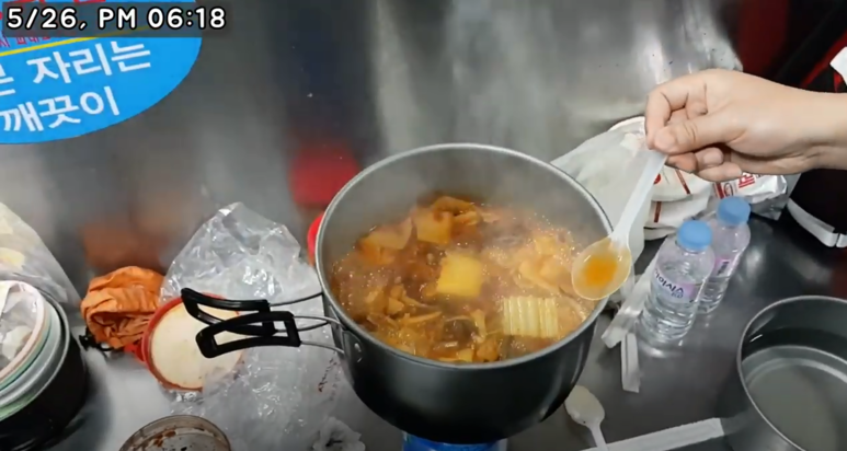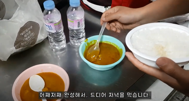 수저가 없어서 비닐 채로 먹었습니다.