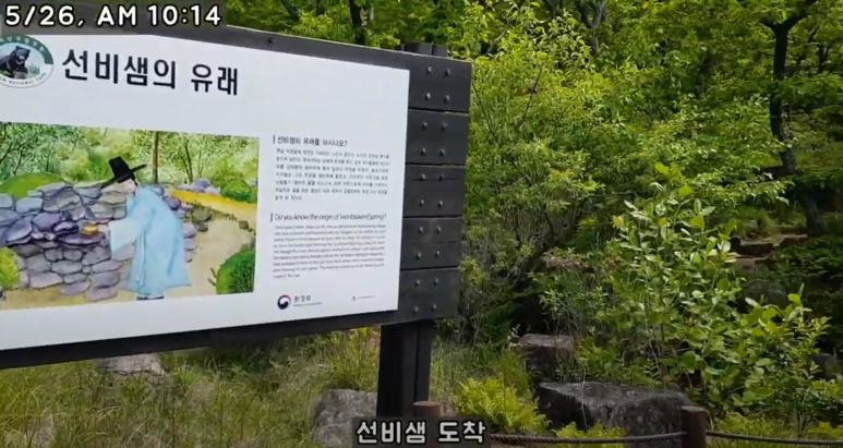 오전 10시 14분에 선비샘에 도착했습니다.