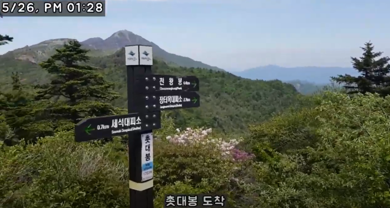 오후 1시 28분, 촛대봉에 도착했습니다.